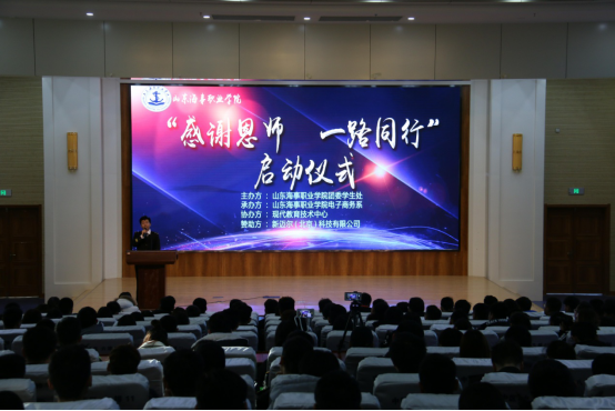 此次“感谢恩师,一路同行”写给高中老师的一封信活动由山东海事职业学院院团委主办,电子商务系承办,新迈尔(北京)科技有限公司全程赞助。启动仪式各二级学院均有学生代表参与,参与人数多达450余人。启动仪式由电商系学生彭建勋主持,山东海事职业学院学生会主席侯鲁岳做代表宣读倡议书,团委副书记李雪老师宣读要求及注意事项并分发信纸。