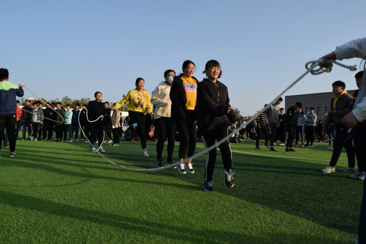 为相应十九大关于“全民健身”的要求,丰富学生的课余文化,11月 8日下午15:00,学生处在体育场举办了第四届宿舍艺术文化节之公寓系列文化活动——全体2017级跳绳比赛,我院17级全体3000余名学生参加此次比赛,学生处副处长吕玉国出席开幕式并讲话,比赛由学生处李银涛老师主持。
