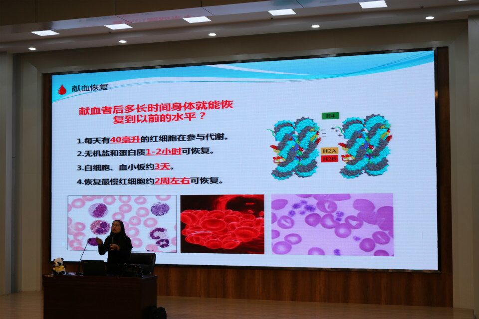 为促进我院学生了解无偿献血知识,增进对无偿献血的认识,促进积极参与无偿献血公益事业,2017年12月18日,由团委邀请潍坊市中心血站团体献血服务科副主任杨馨燕来做无偿献血知识宣教讲座,各院系学生积极参加了在图书馆报告厅举办的“无偿献血知识讲座”活动。