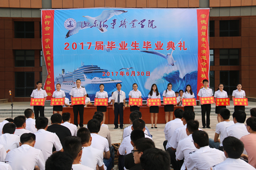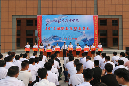6月30上午,山东海事职业学院2017届毕业生毕业典礼在图书馆前广场隆重举行。党委书记、院长王敬良,副院长李振鹏,院长助理仉继航,党政办、教务处、学生处、团委以及各院系部主要负责人、教师代表以及全体毕业生参加了典礼,典礼由仉继航同志主持。