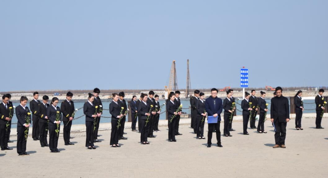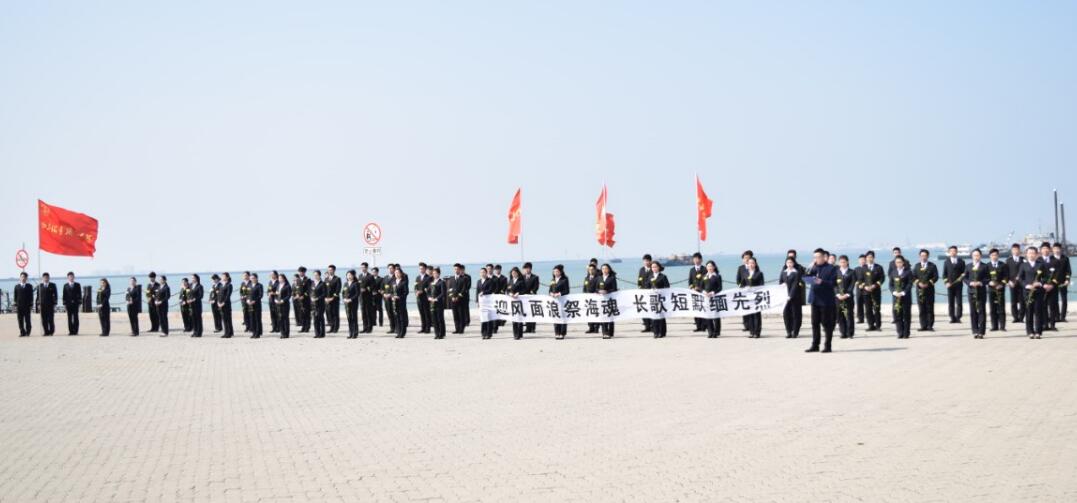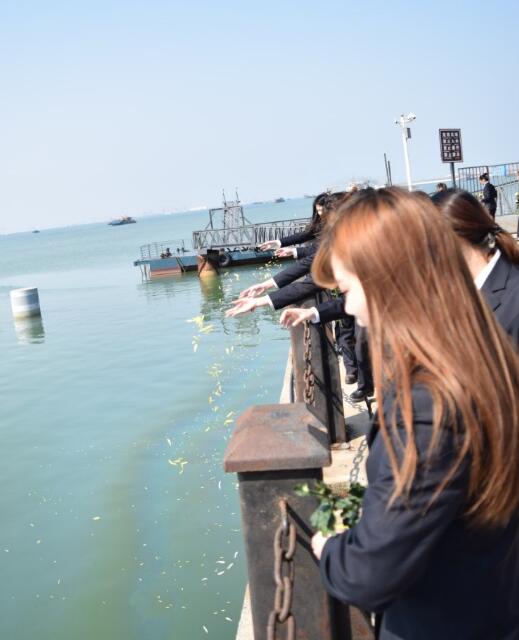 3月29日,一年一届的山东海事职业学院清明海祭活动在滨海区欢乐海浴场举行,学子们手捧花瓣洒向大海,向海上英魂默哀致敬。