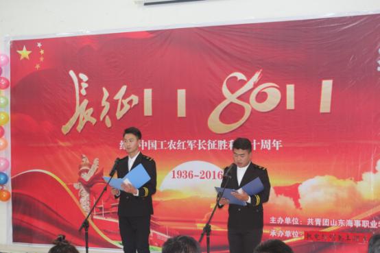 为促进我院学生汲取革命先烈伟大的精神力量,传承以爱国主义为核心的民族精神,弘扬中华民族团结统一奋斗进取的民族思想,给广大爱好文学、朗诵的同学一个展现自我的平台。11月16下午,我院举行了长征胜利80周年诗歌朗诵比赛决赛。本次比赛由共青团山东海事职业学院委员会主办,机电与信息工程系承办。