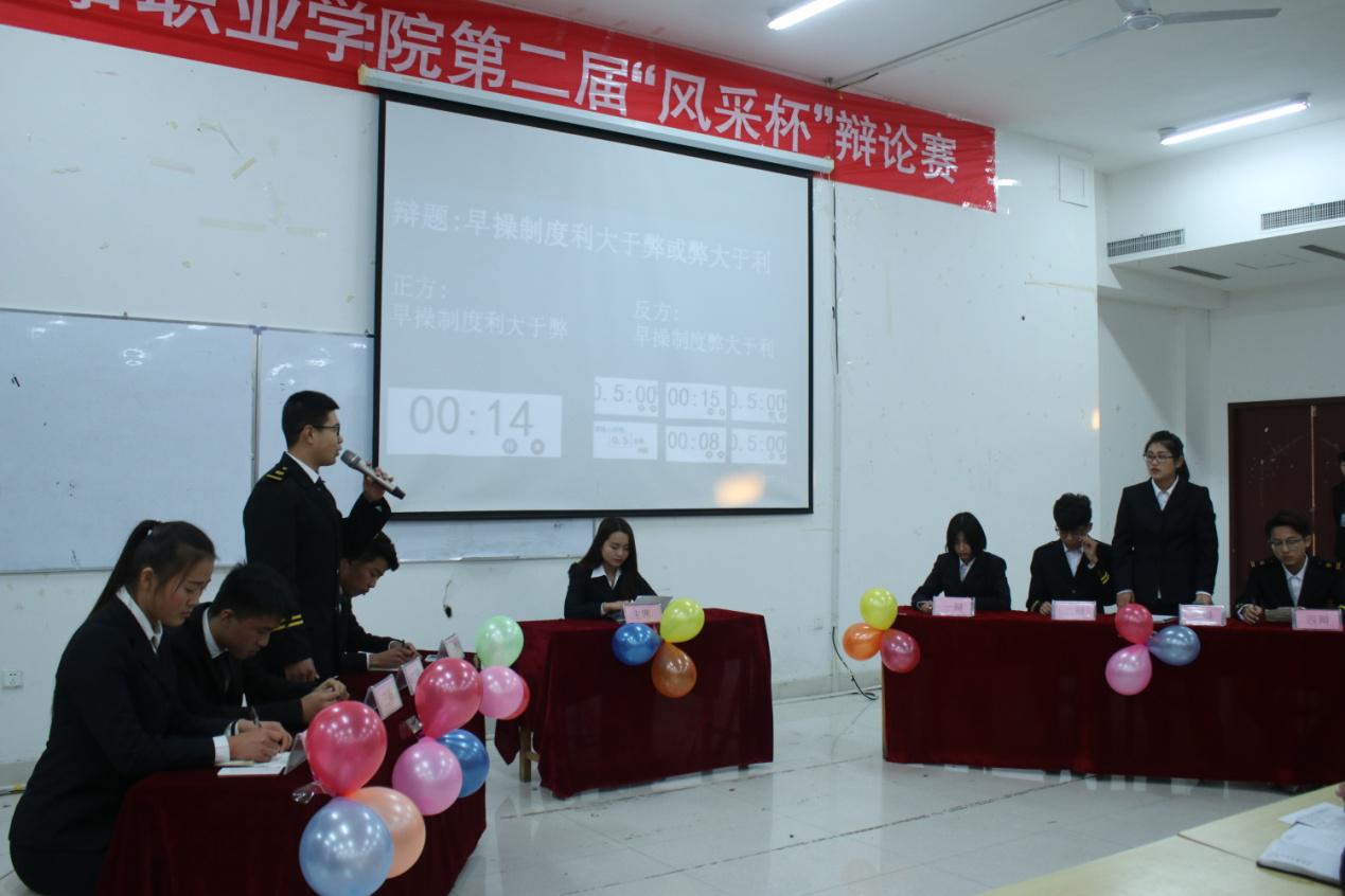 为丰富同学们课余生活,活跃校园气氛开拓思想,体现大学生朝气蓬勃、积极向上的精神状态。培养发掘辩论人才,提高学生的阅读、写作、视听、演讲能力和团结协作能力。12月7日,在2518教室隆重举行了山东海事职业学院“风采杯”辩论赛,此次大赛由共青团山东海事职业学院委员会主办,机电与信息工程系团总支承办。
