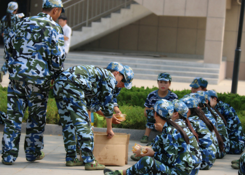 军训期间学生们分发月饼