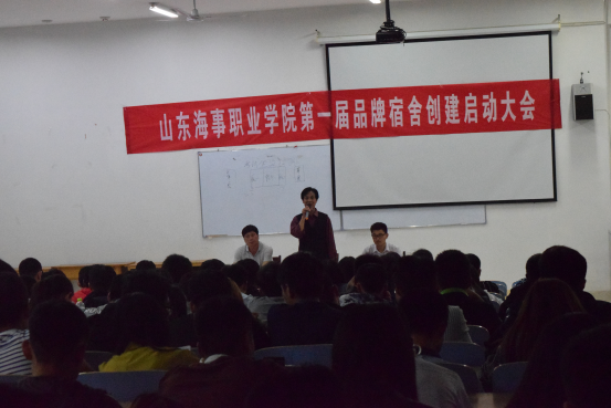 5月23日晚8点,山东海事职业学院学生处在1518教室召开了山东海事职业学院第一届品牌宿舍创建启动暨动员大会,学生处处长张锡功、学生处处长助理吕玉国、公寓管理科科长刘晓飞、辅导员老师及全院学生干部、宿舍舍长出席了本次活动。