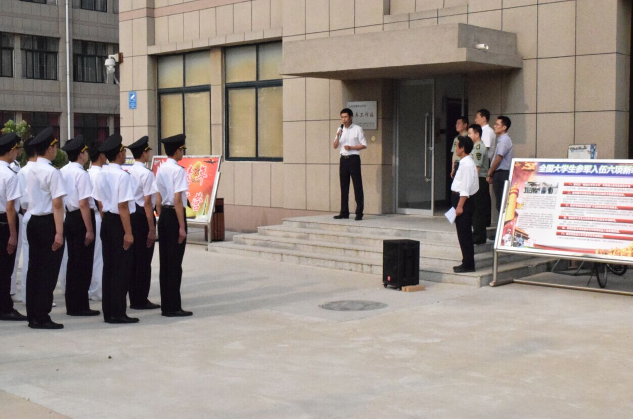 仪式中,徐部长首先对我院多年来的征兵工作给予了高度评价,认为我院的征兵工作扎实有效、特色鲜明、亮点突出。他希望学院依托征兵工作站,总结以往先进经验及做法,不断完善大学生征兵工作机制,进一步拓展征兵工作平台,推动学校大学生征兵工作再上新台阶。最后,仉院长作总结讲话。他指出:征集大学生入伍是新形势下提高部队兵员素质,加强国防和军队现代化建设的重大举措,大学生携笔从戎既是报效祖国、献身国防作奉献,也是锺炼自己、全面成长的一次重要机遇。希望我院大学生增强国防义务,携笔从戎,积极投身国防事业,为实现中华民族伟大复兴的中国梦做出新贡献。