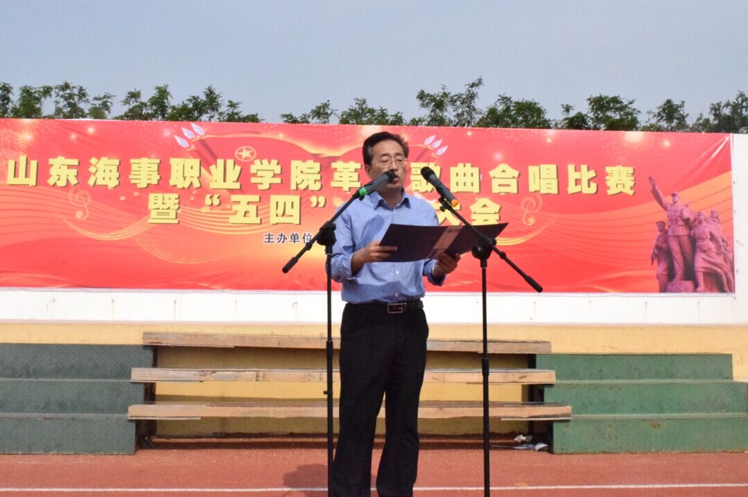 2016年5月11日下午两点,由山东海事职业学院团委、学生处举办的革命歌曲合唱比赛暨“五四”表彰大会在操场举行。院长王敬良、党委副书记徐立清、副院长谢献文等领导出席了此次大会,本次大会由仉院长主持。