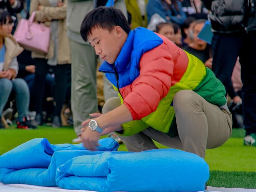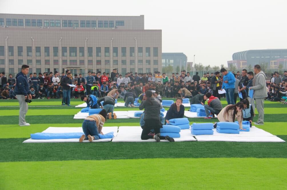 2015年11月4日,我院为加强精神文明宿舍建设,有效督促、激励同学们营造良好的生活环境,养成良好的生活习惯,在操场举行了”山东海事职业学院第三届叠被子大赛。