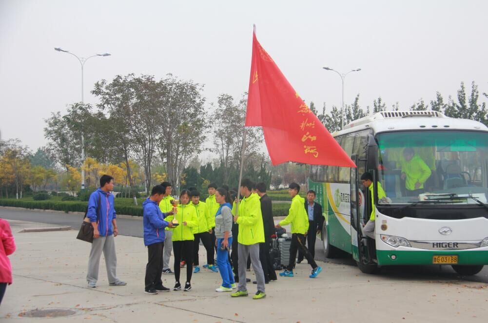 10月31日至11月3日,2015年山东省大学生田径锦标赛在日照举行,我院派出16名运动员参加了男子乙组的比赛。并且在21所高职院校中夺得团体总分第一名的惊人成绩。4日下午2:30,我院运动健儿在学生处张锡功处长的带领下凯旋归来,仉继航院长,团委书记李政,学生处处长助理吕玉国,以及体育部王爱双老师来到校门口迎接。学院门口悬挂着“热烈欢迎我院运动健儿们载誉归来”的巨幅标语。标兵队、花束队、花环队排着整齐的队伍站在院门口迎接我院光荣的运动健儿。