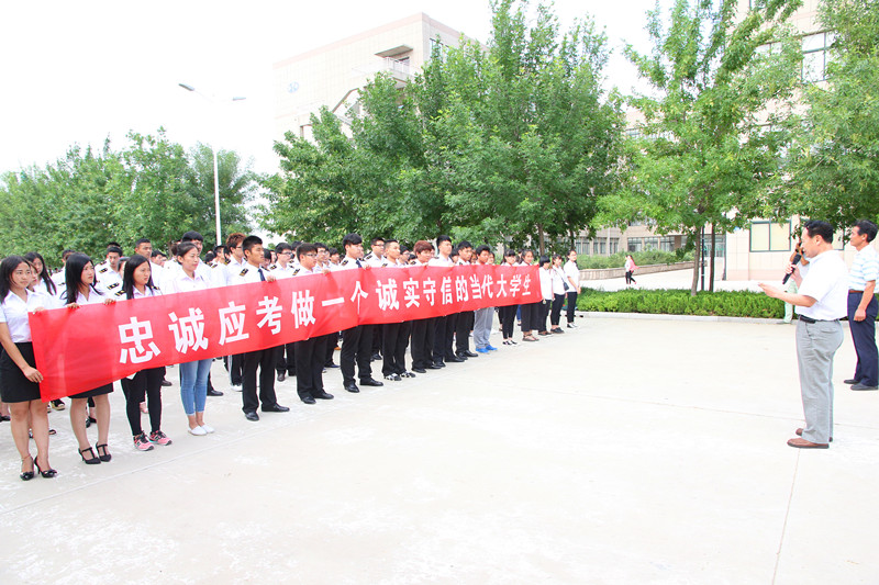为严肃考风考纪,营造积极、诚信的考试氛围。近日,我院团委学生处联合教务处在学院主干道举行“严肃考风考纪树立优良学风”考前宣誓动员大会。学生处处长张锡功、教务处处长李欣、各系部辅导员以及学院全体学生干部共同参加了此次大会。大会由学生处处长张锡功主持。