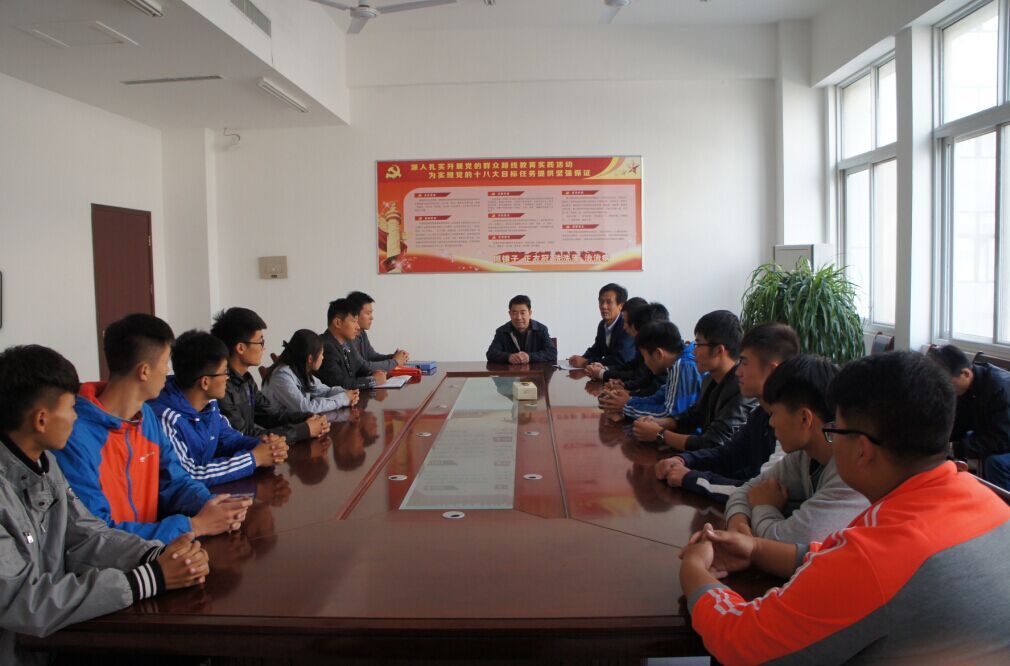 10月29 日上午8:00.李振鹏院长和学生处张锡功处长在我院会议室为代表我院参加山东省大学生田径锦标赛的16名运动员作最后的嘱托。