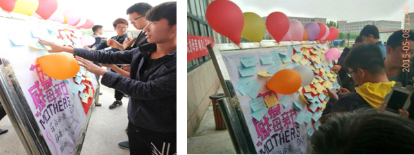 (2)小小的纸条,短短的话语,却寄托着对母亲最美好的祝福。活动开展时,校广播站为伟大母亲献上赞美的歌曲,并诵读机电与信息工程系为所有母亲献上的赞美词,为伟大母亲们送上最真挚的祝福,感恩母亲,感恩母爱。
