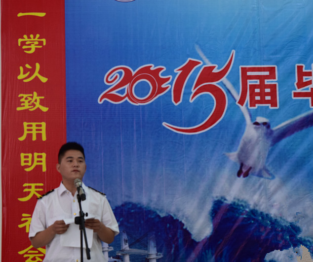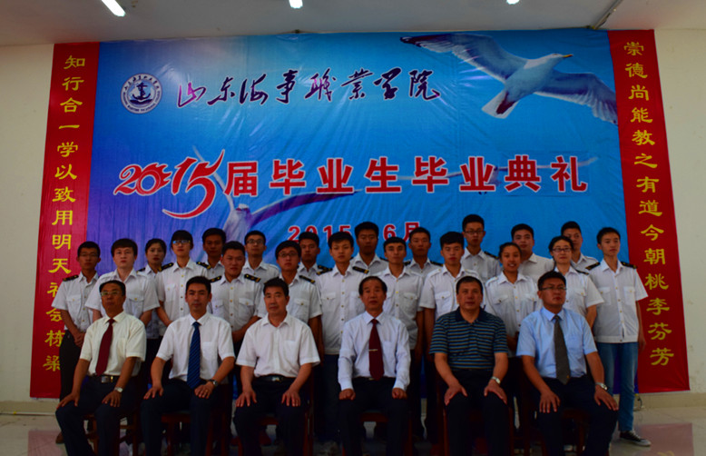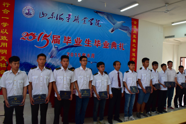 典礼举行了隆重的毕业仪式,由党委书记/院长王敬良为2015届毕业生颁发毕业证书,并合影留念。航海技术系李晓伟作为教师代表,向毕业生们做了毕业贺词,祝贺广大毕业生取得的优异成绩,圆满完成了学业,向同学们提出了殷切期望,送上了衷心的祝福,期望他们工作顺利,常回家看看,祝福他们前程似锦,事业有成。毕业生代表孟阳阳同学在发言中,代表全体毕业生对全院辛勤工作、无私奉献的老师们表示深深的感谢和崇高的敬意,并表示在今后的工作中,全体毕业生将努力学习,扎实工作,力争在未来的工作和学习中取得更大的成绩,不辜负母校的培养,不辜负老师的教诲,做社会的有用之材,为母校争光。