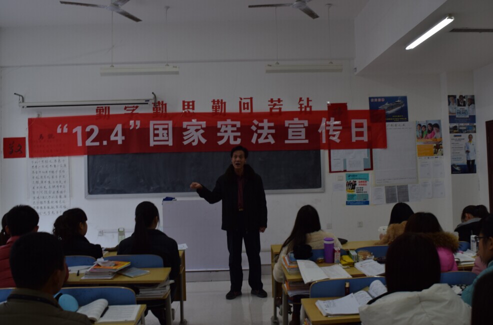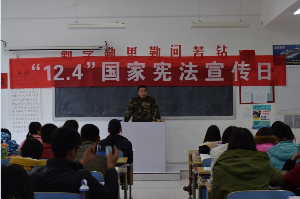 12月4日上午,我院聘请了武警边防派出所教导员沈鸿洲,为我院学生做了一场以“学习《宪法》,弘扬法治精神”为主题的报告会。会后并组织了师生签名活动。