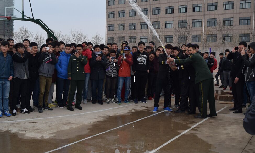 为了进一步普及消防安全知识,增强师生消防安全意识,掌握在火场中迅速逃生、自救、互救的基本技能,提高师生应对紧急突发事件的能力,2015年4月1日下午近千名师生在安保处、团委学生处统一组织下,按照学院制定的“防火逃生演练实施方案”,在滨海开发区消防大队领导的指导下,共分三个阶段进行综合消防安全演练,即消防疏散撤离、现场消防器材使用、培训授课。