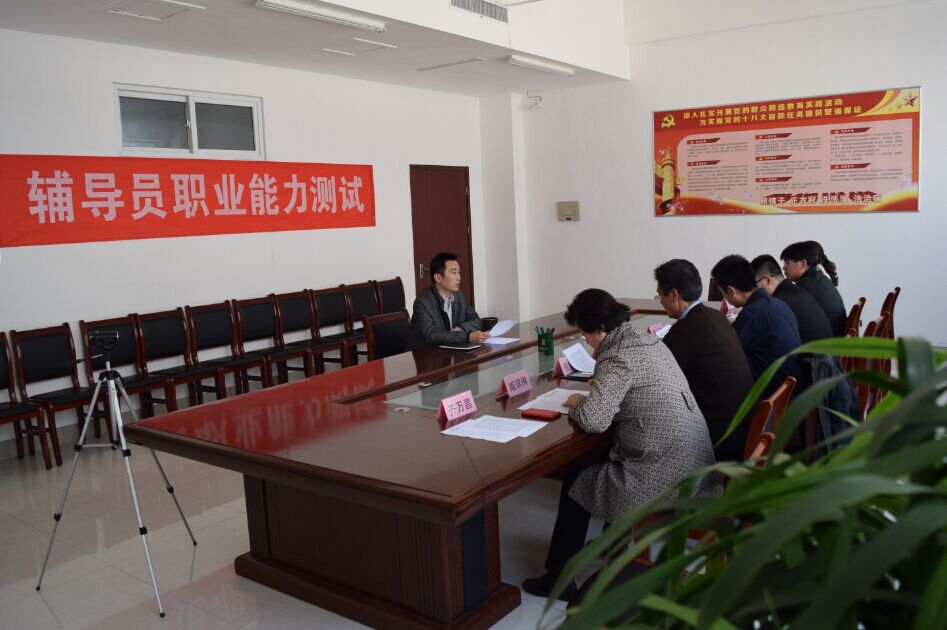 辅导员职业能力第二期应急突发事件处理测试于2015年4月15日在学院会议室召开,院领导仉继航出席并担任主考官,学生处处长张锡功,团委副书记李政,各系支部书记、负责人臧琪琳、李培磊、张娣、齐万昌担任考官。测评由张锡功处长主持。