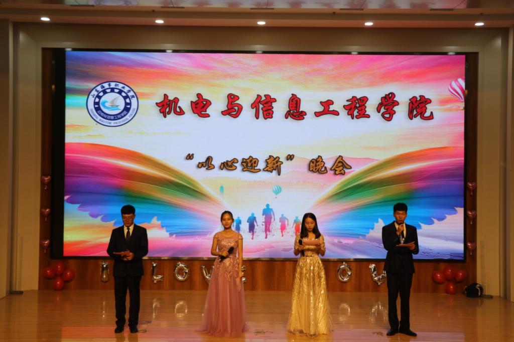为迎接2018级新生,9月26日晚,机电与信息工程学院在图书馆报告厅举行了主题为“以心迎新”的迎新生联欢晚会。机电学院副院长王冠伟、机电学院团总支书记郑晓龙、机电学院办公室主任毕志成以及各院系辅导员老师出席了本次晚会。