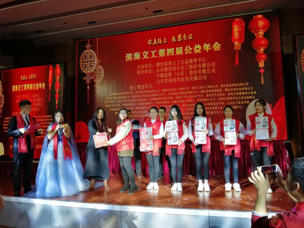 12月30日晚,以“公益路上,感恩有你”为主题的滨海义工第四届公益年会在潍坊海正饭店顺利召开。本次年会由潍坊滨海义工公益服务中心主办,山东潍坊润丰化工服务有限公司、中碳能源(山东)服务有限公司、山东普洛多邦药业有限公司协办。年会有幸邀请到了滨海党政办公室、潍坊滨海传媒等社会各界爱心人士。