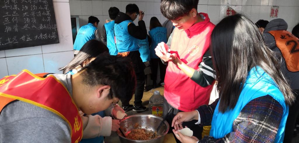 这次志愿活的最特别的就是为老人们包水饺。虽然都不是很熟练,但同学都非常认真的包着每一个水饺。志愿者们分工合作,配合默契,把冒着热气的水饺送到每一位老人手中。志愿者和老人们边吃边聊,欢声笑语不断,场面温馨又感人。最后,在离开敬老院时,老人们热泪盈眶,志愿者们也依依不舍。