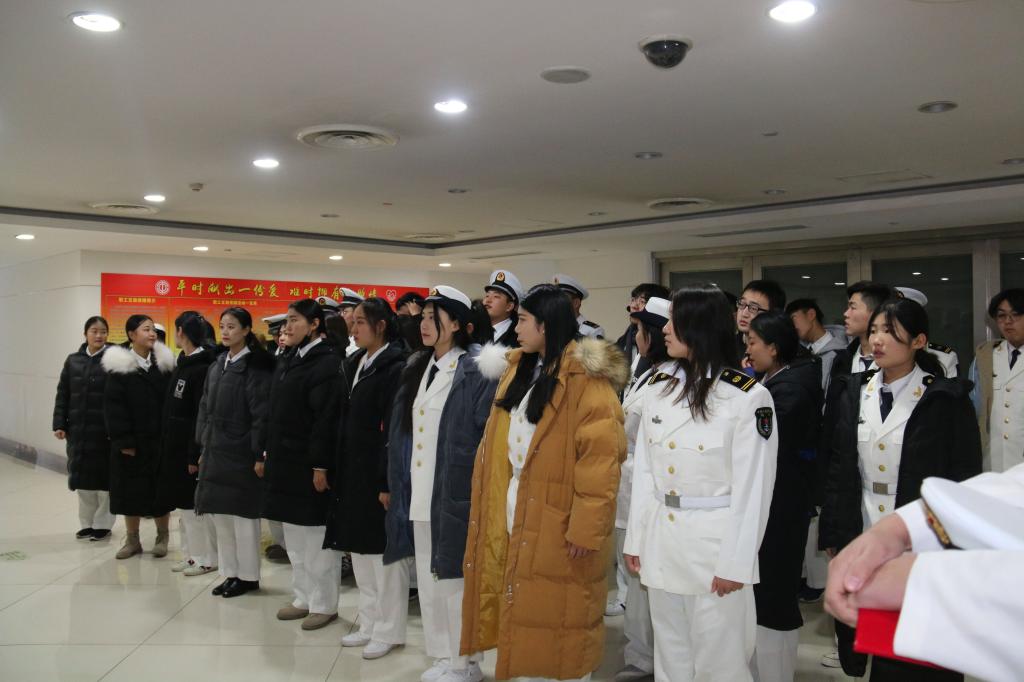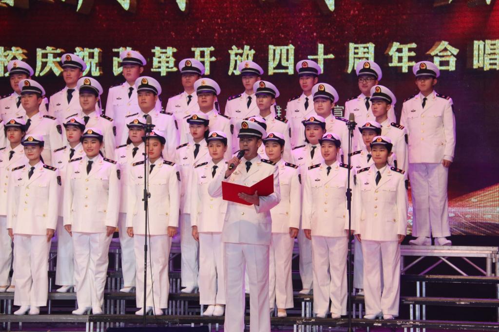我院领导高度重视本次活动,积极组织协调,副院长仉继航和院长助理宋志刚更是亲自上阵,挑起了朗诵重任。指挥连伟龙老师、钢琴伴奏王译晨老师、团委相关工作人员以及40余名来自各院系的同学们都付出了辛勤的汗水。合唱团每天下午至少集体训练1个小时,从最基础的发声开始学习,每个词句都经过了无数次的反复练习,直到上台前也还在编排、调整,力求完美。练习过程中突然接到必须有钢琴伴奏的通知后,经过学院领导的多方协调,借来了兄弟院校的一台钢琴;后期还专门邀请到了潍坊学院音乐学院的老师为合唱团进行了指导。经过多次选拔,确定最终成员名单后,团委书记李雪老师为合唱成员们挑选了海军服作为演出服装,充分体现了学院的特色,干净整齐,让人耳目一新。