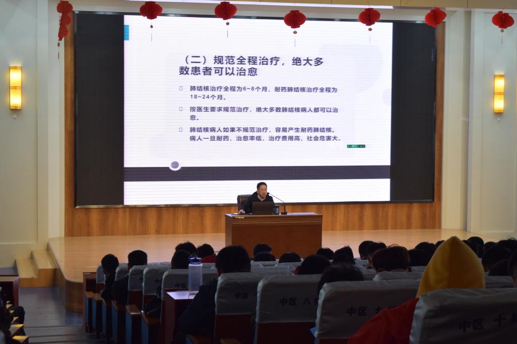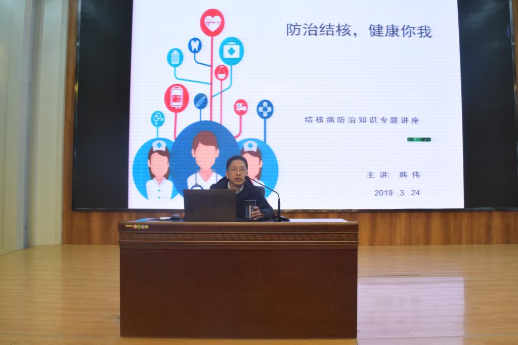 3月25日下午,我院结核病防范知识讲座在图书馆报告厅顺利举行,邀请了航海学院韩伟老师给大家做“防治结核,健康你我”专题讲座,各个二级院系派出学生代表参加了此次讲座。