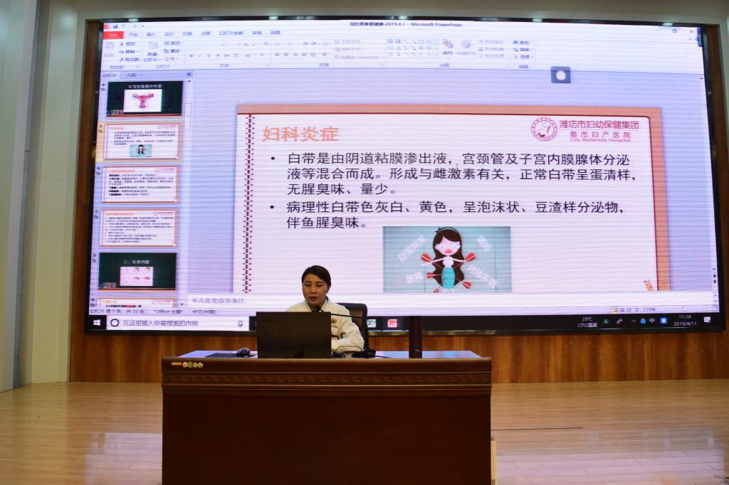 4月11日下午,在我院图书馆报告厅顺利开展了一场以关爱女性、关注女性生理健康为主题的知识讲座。本次讲座由团委主办,邀请到了潍坊市妇幼保健集团都市妇产医院的张凌主任担任主讲人。各院系女生代表参加了讲座。本次讲座旨在增强我院青年女大学生关注自身健康的意识,解决成长过程中在生理健康方面的困惑。