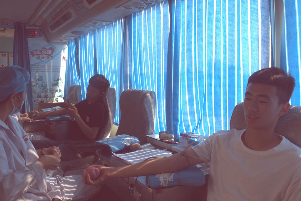 在献血区,前来献血的同学们挽起袖子,坐在采血椅上,献出自己的青春热血。其中一位同学表示:“虽然自己是第一次献血,但是一点都没有感觉到紧张,内心更多的是激动之情。之前就想为社会及医疗系统做出一份贡献,但一直没找到机会,这次在知道学校将举办无偿献血活动后就积极的报了名,希望能通过自己一点一滴的付出,为病患者们提供帮助。”