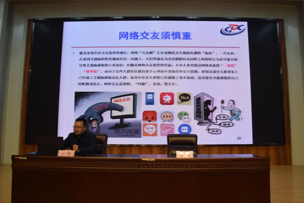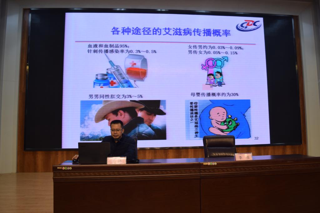 讲座上,王伟科长为同学们仔细讲解了艾滋病的致病原理、发病状况、传播途径、防治措施等,让同学们深刻地了解了艾滋病的危害,了解了有效防治艾滋病的具体措施及预防艾滋病工作的重要性。同时,也消除了大家恐惧心理,掌握了预防知识和基本方法,真正认识到文明、健康有序生活方式的重要性。王伟科长通过大量精确的数字、案例以及直观的图片,从艾滋病感染人群分布、传播途径、艾滋病病毒特征、艾滋病的防治工作及日常注意事项、艾滋病自愿咨询检测、政府政策等方面逐一作了详细讲解。