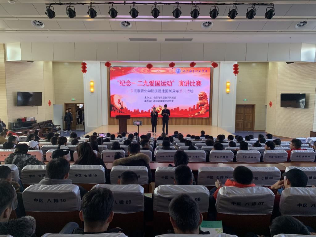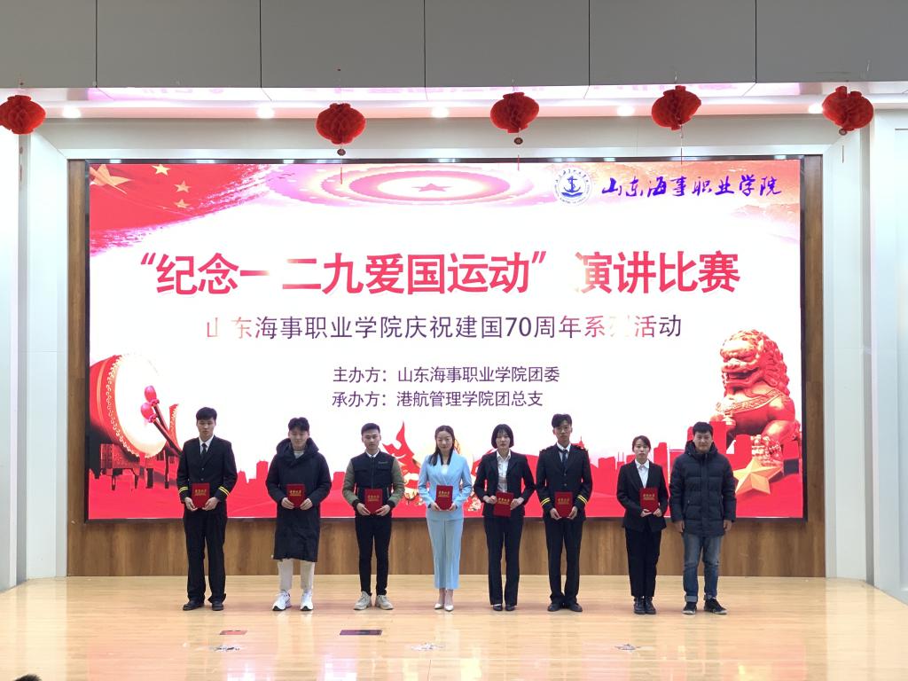 12.12日下午,由校团委主办,港航管理学院团总支承办的,纪念“一二·九”爱国运动主题演讲比赛在图书馆报告厅举行。本次比赛由团委书记李雪、港航管理学院院长助理程美旺、以及各个学院的团总支书记担任评委,选手们围绕“一二·九”爱国主义运动主题展开精彩演讲。最终,来自机电与信息工程学院的盛桂萌获得了一等奖,来自航空学院的丁露露和来自五年制大专学院的白国玉获得了二等奖,港航管理学院的齐晓龙、航海学院的李哲怡、航空学院的田明琦荣获三等奖。