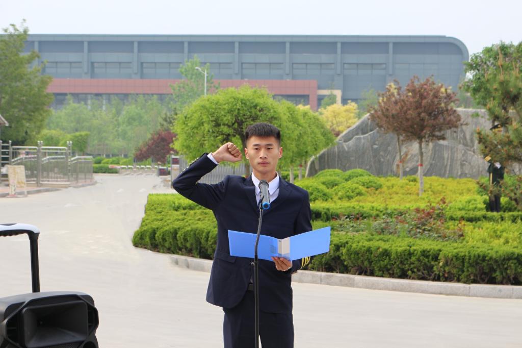学生代表刘颜衡领读入团誓词。使同学们更加认识到自己肩上的重任,立志用知识、理想和满腔热血,谱写更加响亮的青春之歌。青年教师王涛涛、常潇允,学生团员隋正、于嘉巍朗诵诗歌《青春的火焰》,铿锵有力,感情饱满的演讲感染了在场的每一个人。