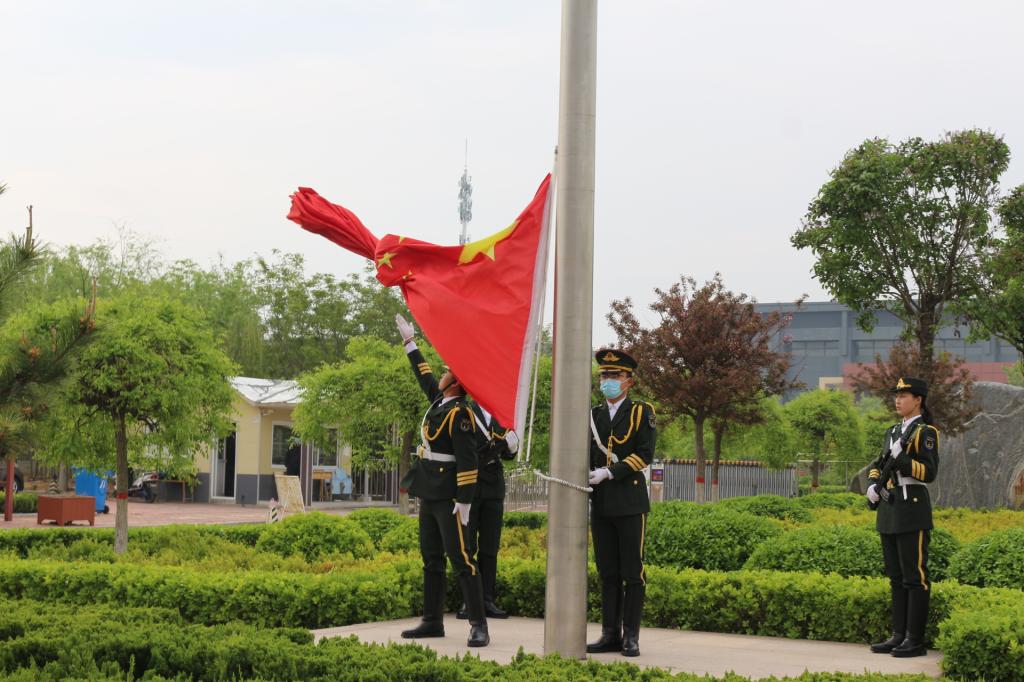 伴随着清晨的第一缕阳光,国旗在昂扬的国歌声中冉冉升起。一束束炽热的目光目送着鲜艳的五星红旗飘扬在湛蓝的天空上,在场师生神情肃穆,心潮澎湃,向庄严的国旗表达着最崇高的敬意。