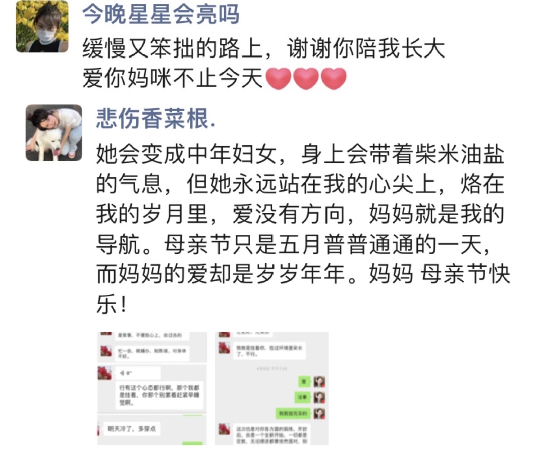 小的时候大手牵小手长大后我陪您慢慢变老,如果母爱有声音那该是怎样一段美妙的旋律呢?我们眼里的妈妈眼角有皱纹,鬓边有白发,嘴里总是不停地唠叨。妈妈,她也曾松花酿酒,春水烹茶,有着诗和远方;可后来为了成为妈妈,是柴米油盐,是酸甜苦辣。是什么让她来不及去看日出;是什么让她忘了七月的荷塘;是什么让她无暇顾及漫天的星光,或许我们很难开口对妈妈说出贴心的话,但从妨碍我们爱着她,一通电话,一声问候,一束鲜花,一份礼物,一条表白的朋友圈都是我们对妈妈最好的牵挂......