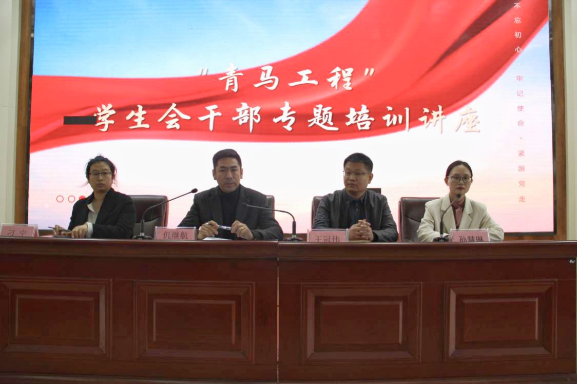 为进一步提高学生干部管理水平和综合素质,充分发挥学生会在“自我管理、自我教育、自我服务”中的先锋模范作用,3月28日,“青马工程”学生会干部专题培训讲座在图书馆报告厅举行。副校长仉继航、学生工作处副处长王冠伟、团委书记刁宁、团委老师孙慧琳、校学生会和各二级组织学生干部共300人出席。会议由孙慧琳主持。
