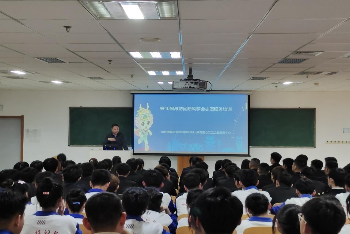 4月9日下午,学校受潍坊国际风筝综合服务中心和潍坊滨海爱心义工公益服务中心委托,承办了第四十届潍坊国际风筝会志愿服务培训活动。