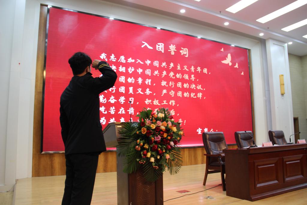 大会现场举行了入团仪式。在团旗的见证下,在优秀团员代表王宇豪的领誓下,全体与会团员面向鲜红团旗,高举右手,庄严宣誓,团员们的铮铮誓言高昂雄浑,展现出了青年一代昂扬向上的精神面貌,彰显着英才学子的青春热血和使命担当。