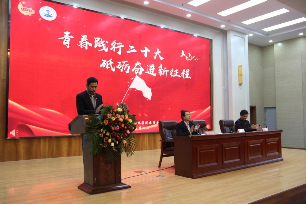 仉校长在致辞中向全校广大青年和共青团干部致以节日的问候,对过去一年我校共青团在强化思想引领、服务青年成长、深化改革创新中所取得的成绩给予充分肯定。他强调,今年是五四运动104周年,是中国共青团成立101周年,新时代的中国青年,生逢其时、重任在肩,广大青年师生要深刻学习领悟习近平总书记的谆谆教导与殷切期望,坚定不移听党话、跟党走,怀抱梦想又脚踏实地,敢想敢为又善作善成,立志做有理想、敢担当、能吃苦、肯奋斗的新时代好青年,让青春在全面建设社会主义现代化国家的火热实践中绽放绚丽之花。