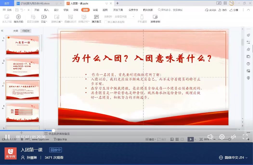 一、持续深入开展“青年大学习”网上主题团课