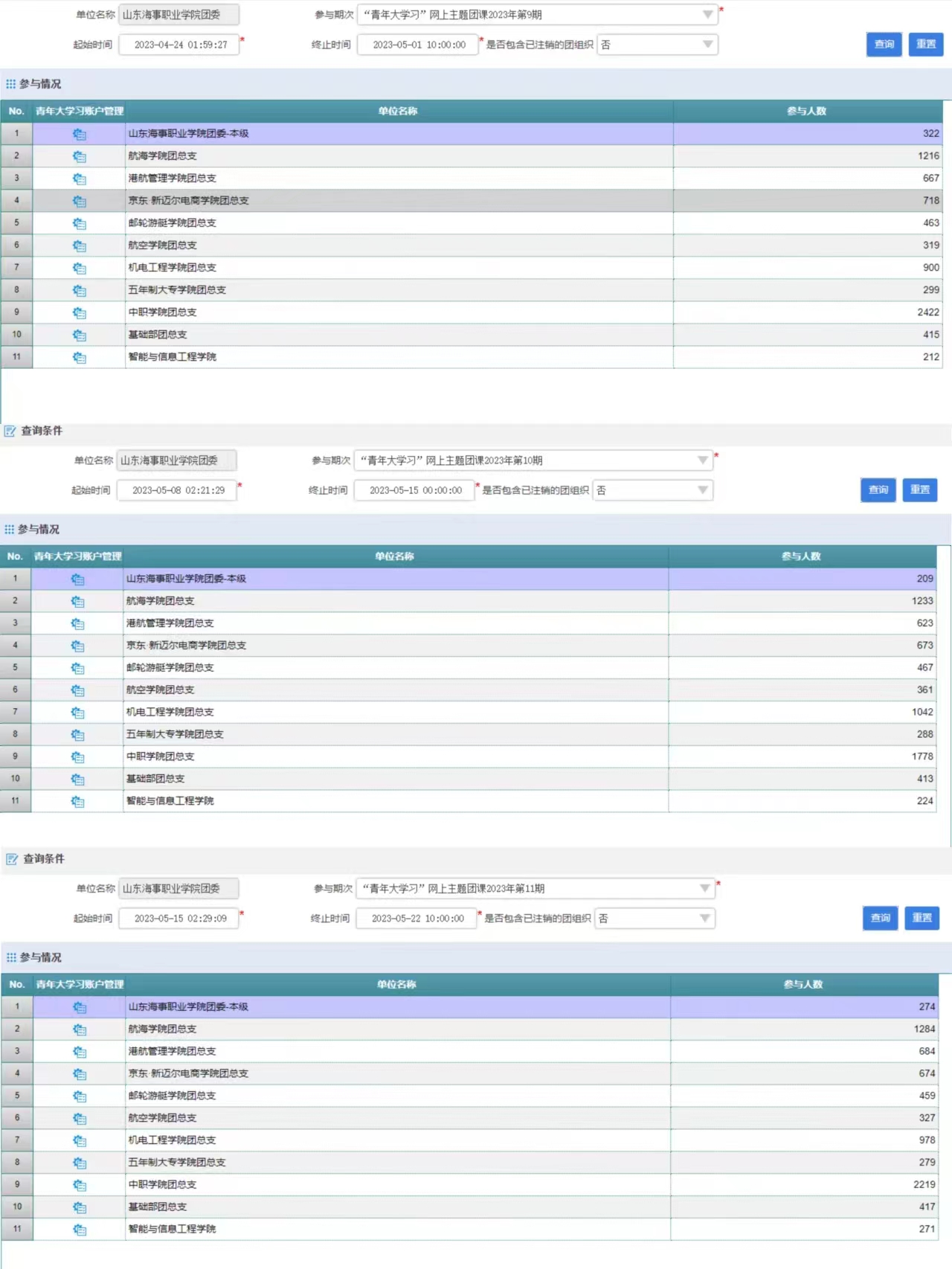 校团委每周定期发布“青年大学习”网上主题团课学习内容,每周一对各团总支学习情况进行反馈。各二级学院团总支、各班团支部积极开展学习交流活动,推动我校团员青年政治学习制度化、常态化。