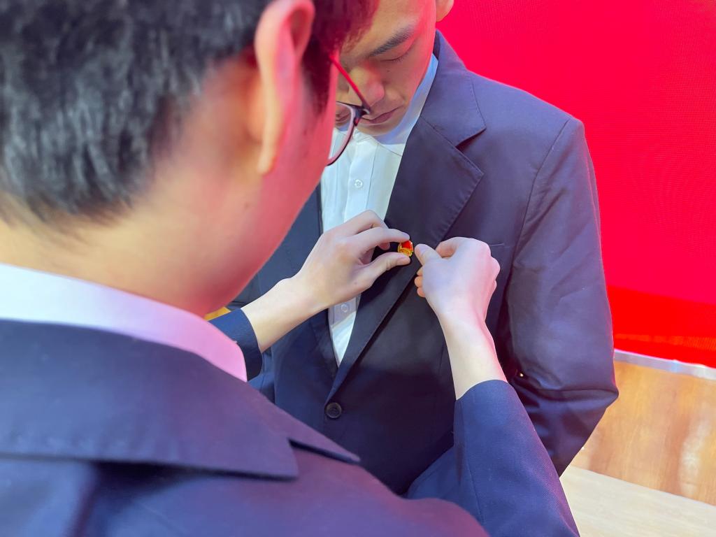 仪式在庄严而激昂的国歌声中拉开帷幕,团委副书记郑晓龙宣读2023年新团员名单,老团员代表为新团员代表颁发团员证、佩戴团徽,港航管理学院刘欣雨同学作为新团员代表带领全体同学进行入团宣誓,邮轮游艇学院李帅仪同学作为新团员代表发言。最后,党委委员、副校长仉继航对新加入团组织的同学们表示热烈祝贺,并向新团员提出了三点要求:一是要树立远大理想,做有志青年;二是要德才兼备,全面发展;三是要勇担责任,做好表率。勉励大家在新时代中国特色社会主义的浪潮中,汇聚青春力量,共筑青春梦想!