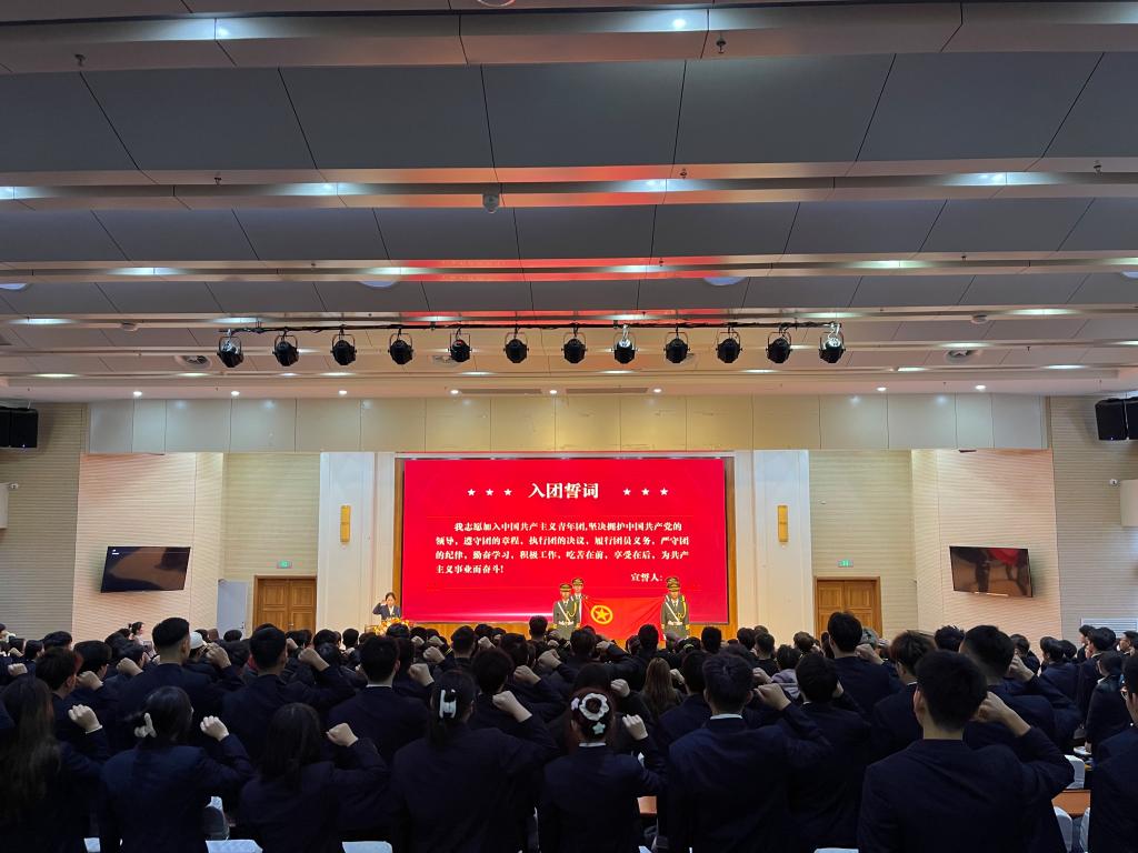 为深入学习贯彻党的二十大精神,增强共青团员的先进性、光荣感和使命感。12月11日,我校在图书馆报告厅举行2023年新团员入团仪式。学校党委委员、副校长仉继航,团委副书记郑晓龙,各二级学院团总支书记,2023年新发展团员代表共400余人参加入团仪式。