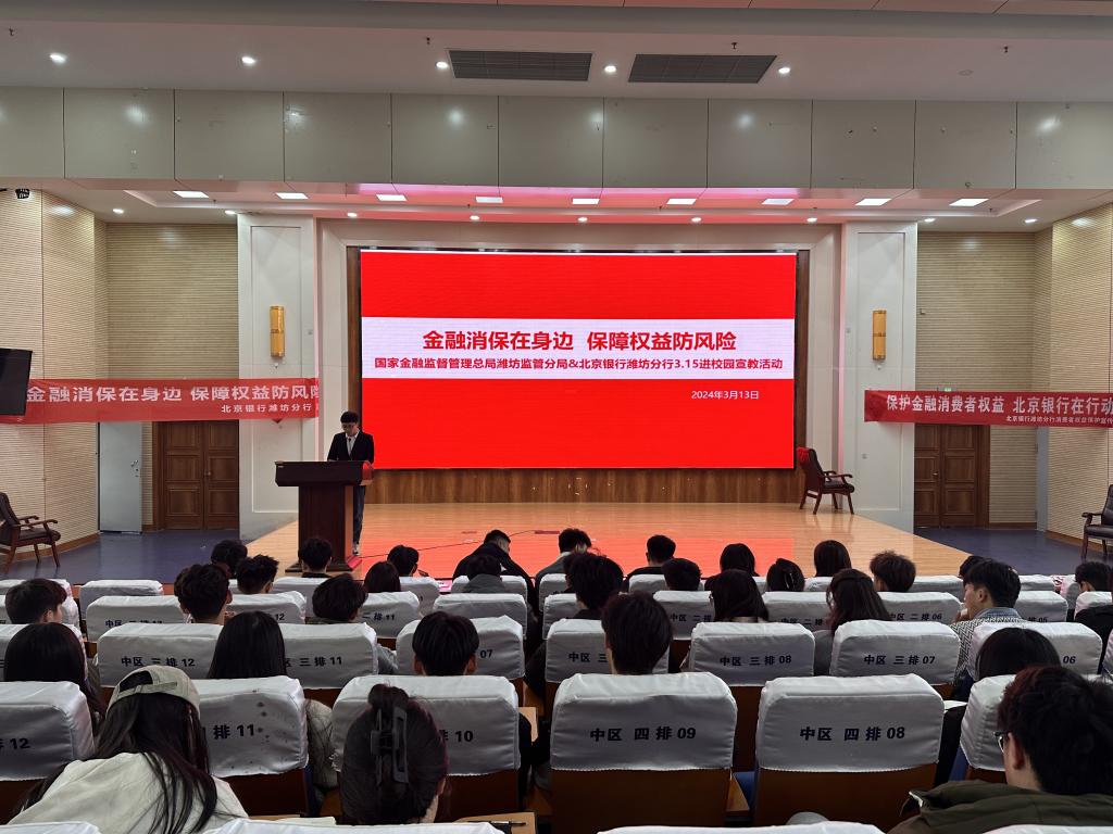 为进一步提高大学生防诈、识骗能力,维护学生财产安全和合法权益。3月15日,我校联合北京银行在图书馆报告厅开展“金融消保在身边,保障权益防风险”防诈骗宣传活动。我校团委老师赵雨婷、校级学生干部共300余人参加讲座。