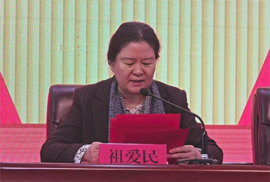 党委书记祖爱民在大会上讲话;她代表学校党委向大会的召开表示热烈的祝贺,并提出几点希望和要求:一是坚定理想信念有信仰,做“听党话跟党走”的人;二是秉承守正创新敢担当,做“厚植家国情怀”的人;三是敢于吃苦敢担大任,做“真抓实干埋头苦干”的人;希望大家以这次大会的召开为契机,对标对表习近平总书记要求,以更加饱满的工作态度,更加积极的学习热情,更加昂扬的拼搏精神,肩负起青年学生的使命与担当,积极投入投身到学校各项工作高质量发展的建设中,为实现中华民族伟大复兴的中国梦做出新的更大贡献。