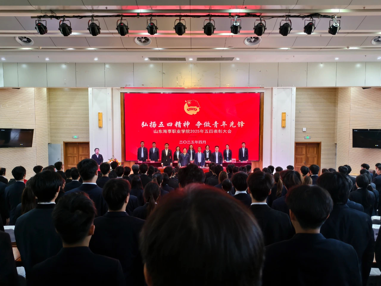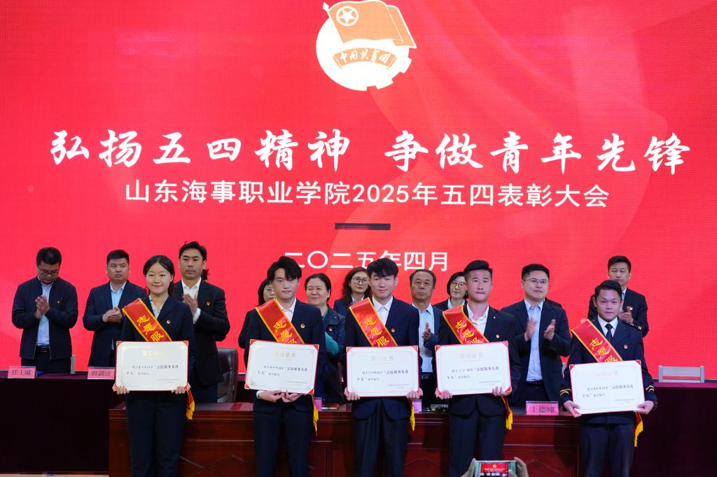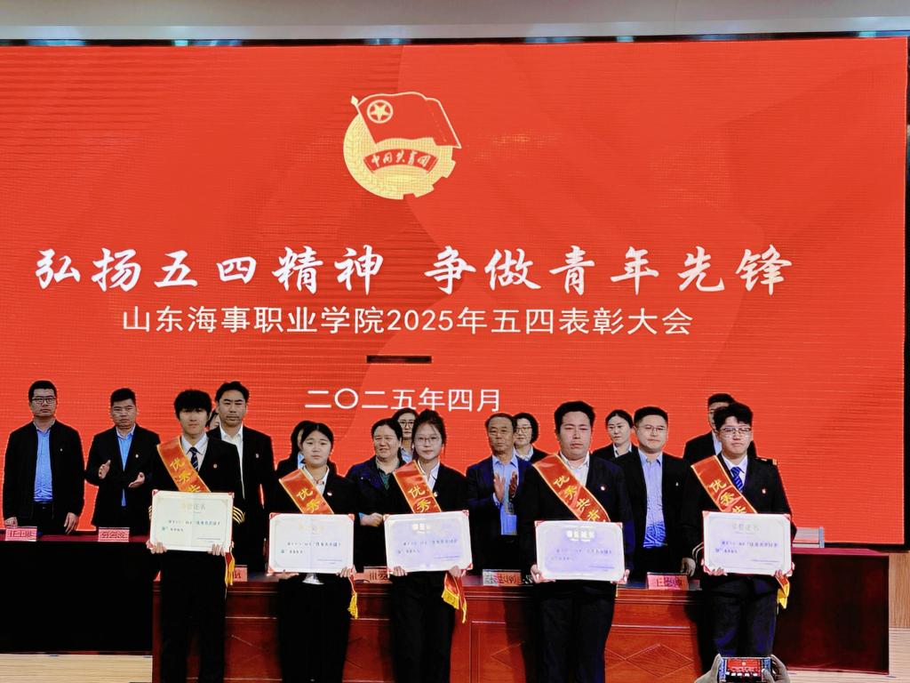 4 月 29 日上午,学校在图书馆报告厅召开2025年“五四”表彰大会,山东海事职业学院党委书记祖爱民,党委委员仉继航、宋志刚、王德帅出席会议。各学院党总支(支部)书记、团总支书记和受表彰的学生代表共400余人参加会议,会议由团委书记刁宁主持。