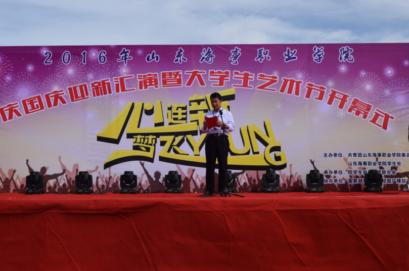 2016年9月29日下午2点,由我院团委学生处主办的“庆国庆迎新汇演暨大学生艺术节开幕式在我院操场隆重举行,学院党委副书记徐立清,副院长李振鹏,副院长仉继航等领导出席并观看了本次开幕式。副院长李振鹏上台致辞。
