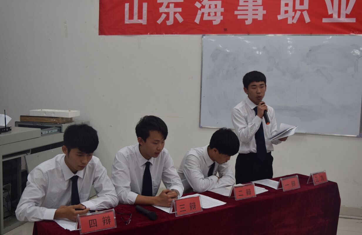 2016年5月12日晚上7:00,由山东海事职业学院团委举办的山东海事职业学院第三届辩论赛在2518隆重举行。此次辩论赛吸引了同学们的广泛关注,我院各系部分别派出了最强代表队来参加本次比赛,为自己的系部争光添彩,本次比赛的评委团由学生处处长助理吕玉国以及各系部推荐的一名老师组成。