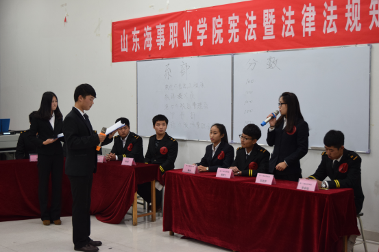 2015年12月3日,我院第三届寝室文化艺术节系列活动三----山东海事职业学院宪法暨法律法规知识竞赛在2518活动中心举行,学生处处长张锡功、处长助理吕玉国及各系辅导员老师出席了本次活动。