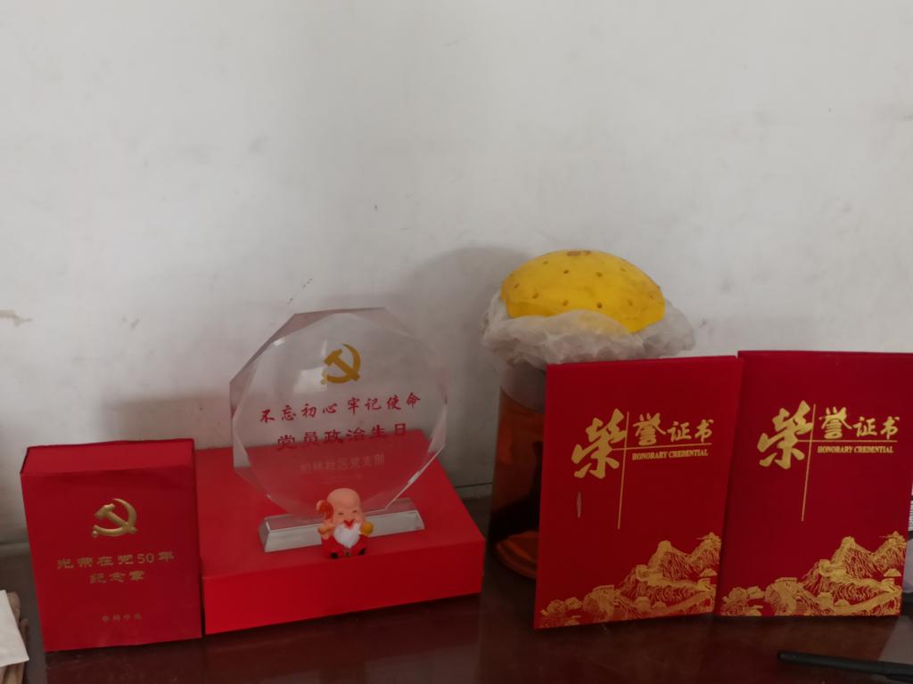 在柏林村村干部带领下,队员们来到了党员郭兆文的家中,详细询问了郭爷爷的身体状况、生活情况及存在的困难,并送去了慰问品。郭爷爷今年81岁,但党龄已长达61年。他身体硬朗,精神矍铄,向我们讲述了在68军炮兵团服役时的事迹和部队入党的难忘经历。他在退伍之后又投入到振兴农村发展的事业中,不忘初心和使命,兢兢业业为党事业奉献四十余年,为柏林村的发展贡献半生。在短暂时间的交谈中,我们能切身感受到郭爷爷对党的坚定信念。