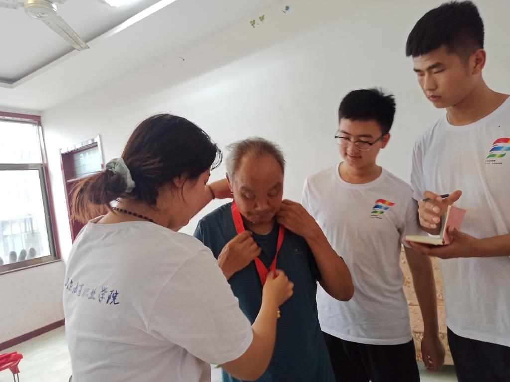 在中国共产党成立100周年之际,“撸起袖子加油干”青春实践队对柏林村老党员郭兆文同志进行走访慰问。