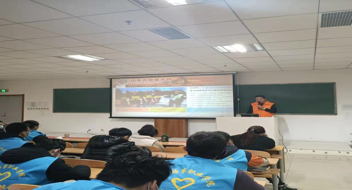 节日当天下午2点,滨海爱心义工公益服务中心、滨海尚善社会工作服务中心的公益讲师团走进山东海事职业学院,为山东海事职业学院的大学生爱心志愿者们送去了一份节日的礼物,有多年志愿经验的义工讲师为大学生志愿者分别讲述了什么是志愿者、志愿服务条例、志愿服务和志愿精神等志愿公益知识。