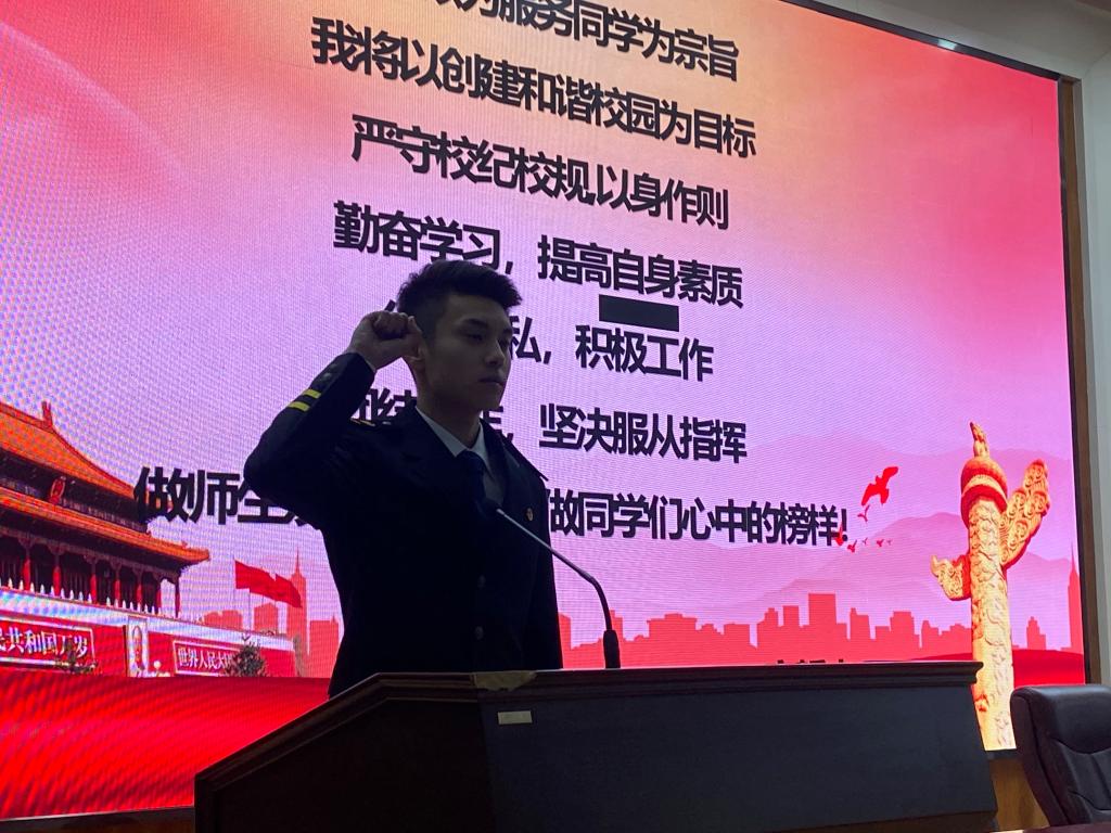 随后,邮轮游艇学院21级海乘2班魏鹏同学带领学员宣誓。